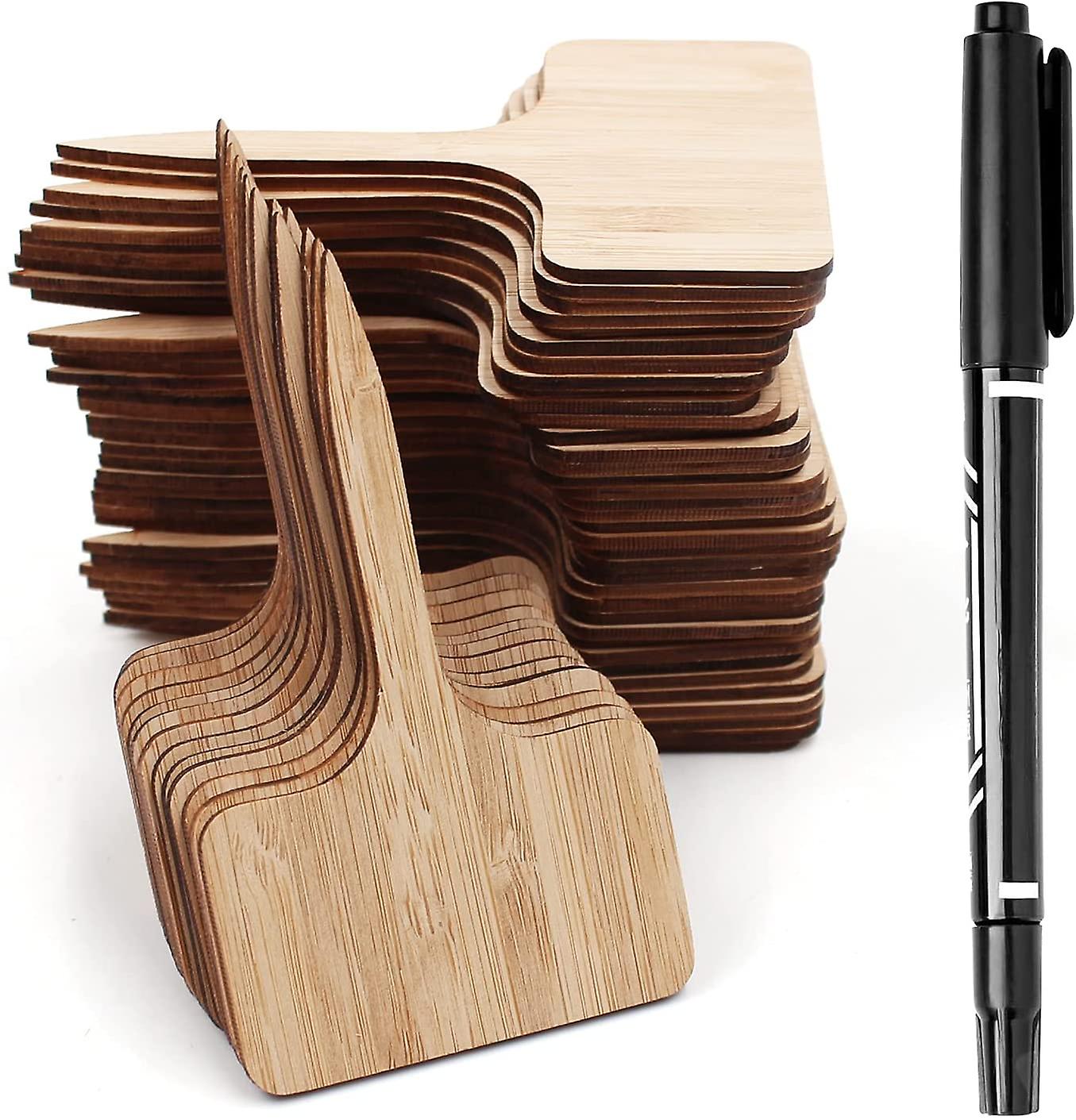 50pcs Bamboo Plant Tags With Marker Pen, Plant Tags Wooden T-type Garden Markers For Seeds Pot Herbs