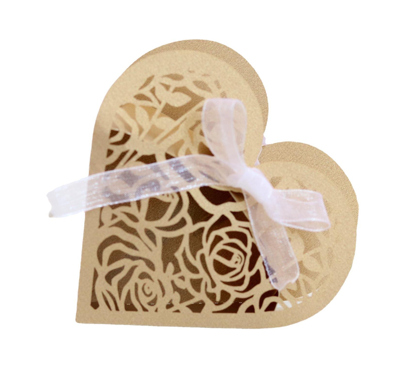 50pcs Gift Candy Box Ramadan Decoration Rose Hollow Heart Chocolate Biscuit Cookie Boxes Wedding Party Favorsgold