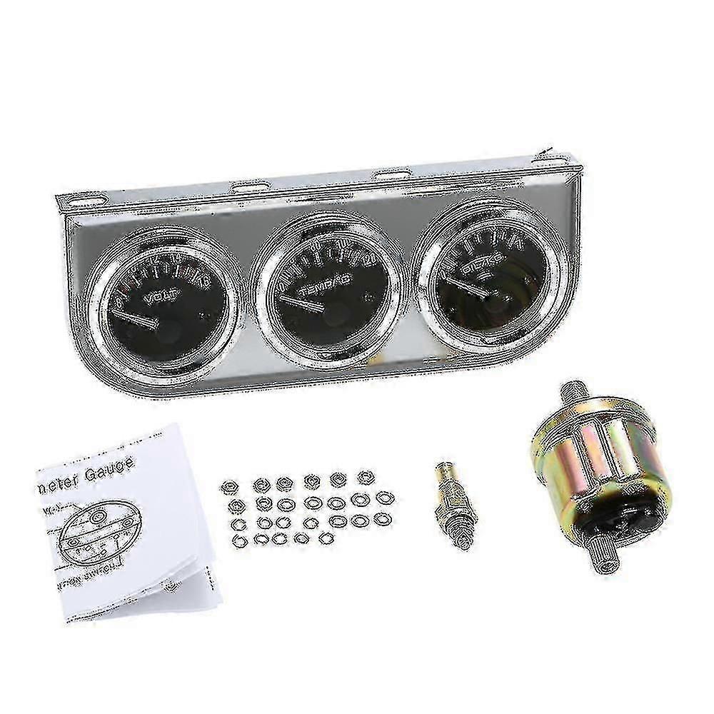 52mm Oil Pressure Water Temperature Voltmeter 3-in-1 Gauge Kit Chrome Finish For Car And Motorcycle Dashboard Installation