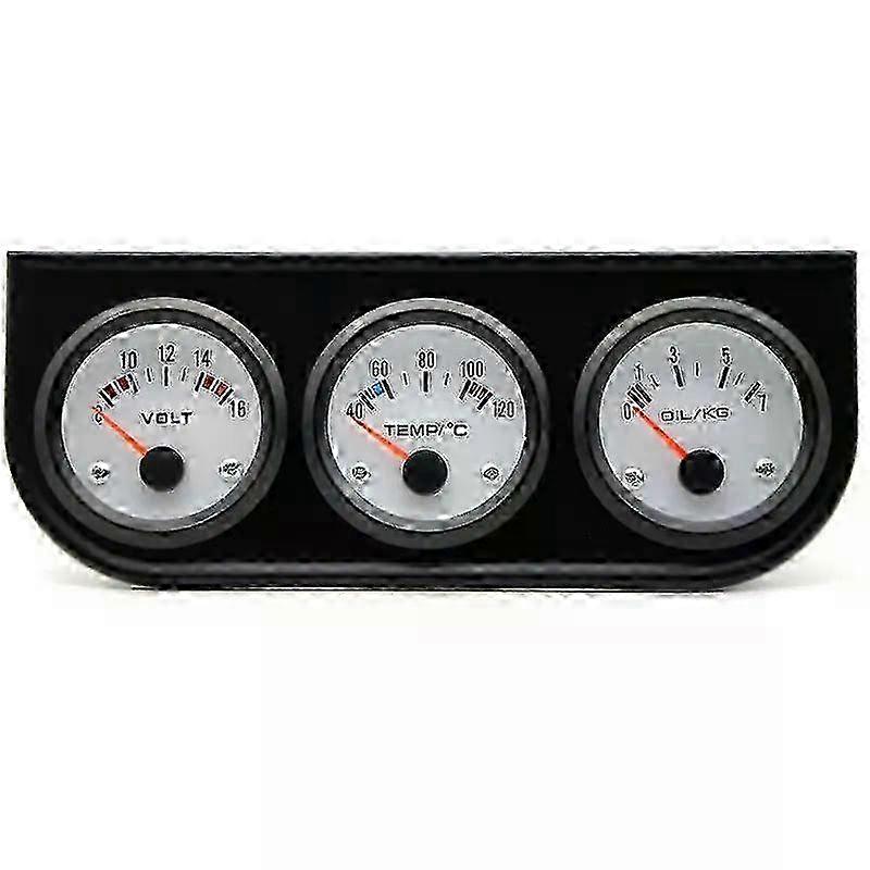 52mm Volt Gauge Water Temp (Celsius) Oil Pressure Black/Chrome Bezel Black/White Face With Temp&Pressure Sensor 3-In-1 Kit Meter