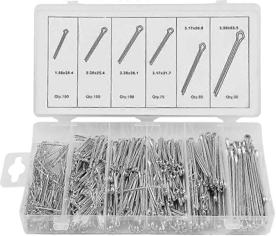 555pcs Cotter Pins Assortment Kit, 6 Sizes Split Pins Mechanical Hitch Hair Tractor Fastener Clip Kit - q36/YY