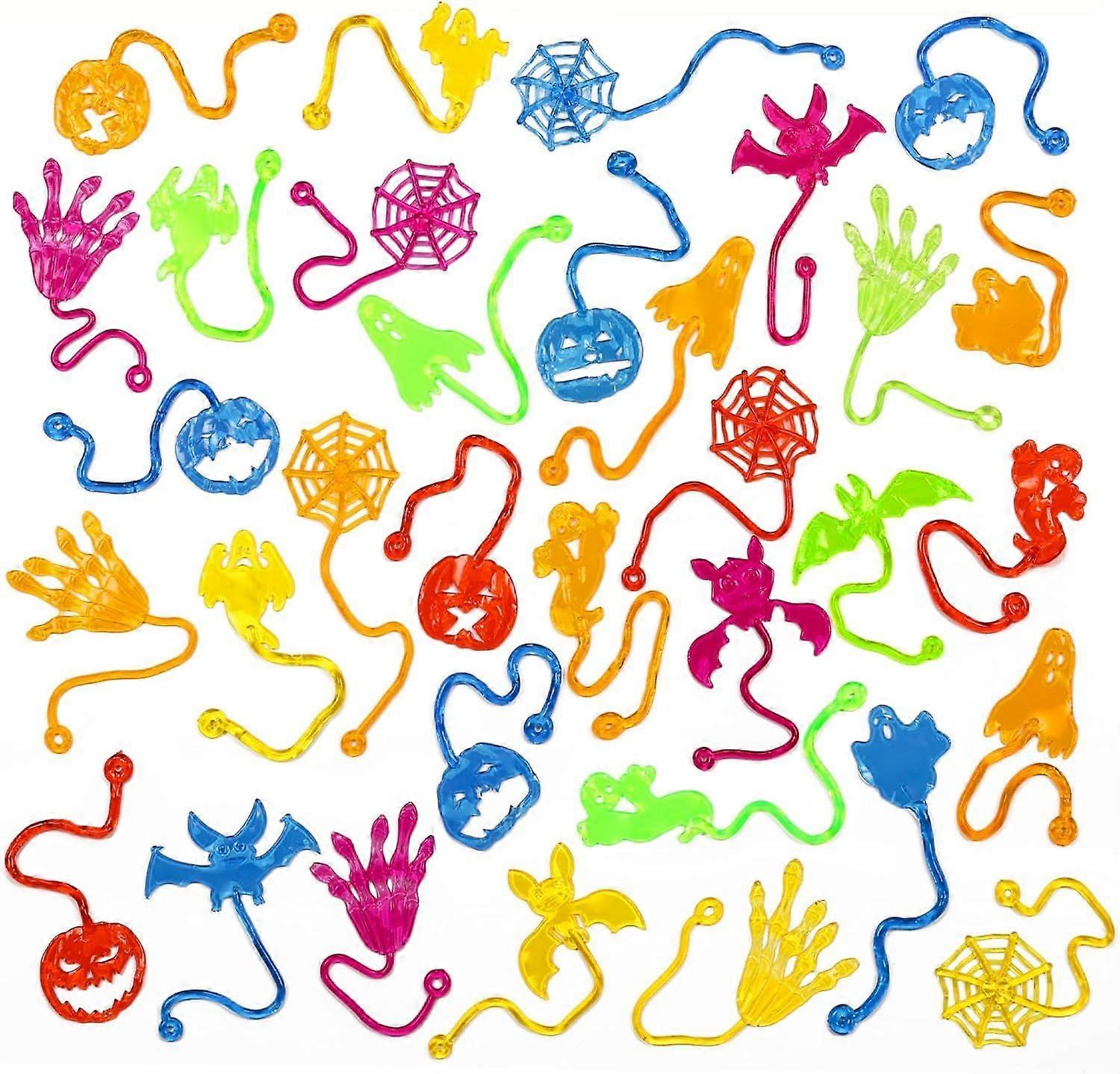 56pcs Halloween Sticky Hands Party Favors Toys for Kids, Skull Skeleton Bat Ghost Pumpkin Styles Sticky Stretchy Toys