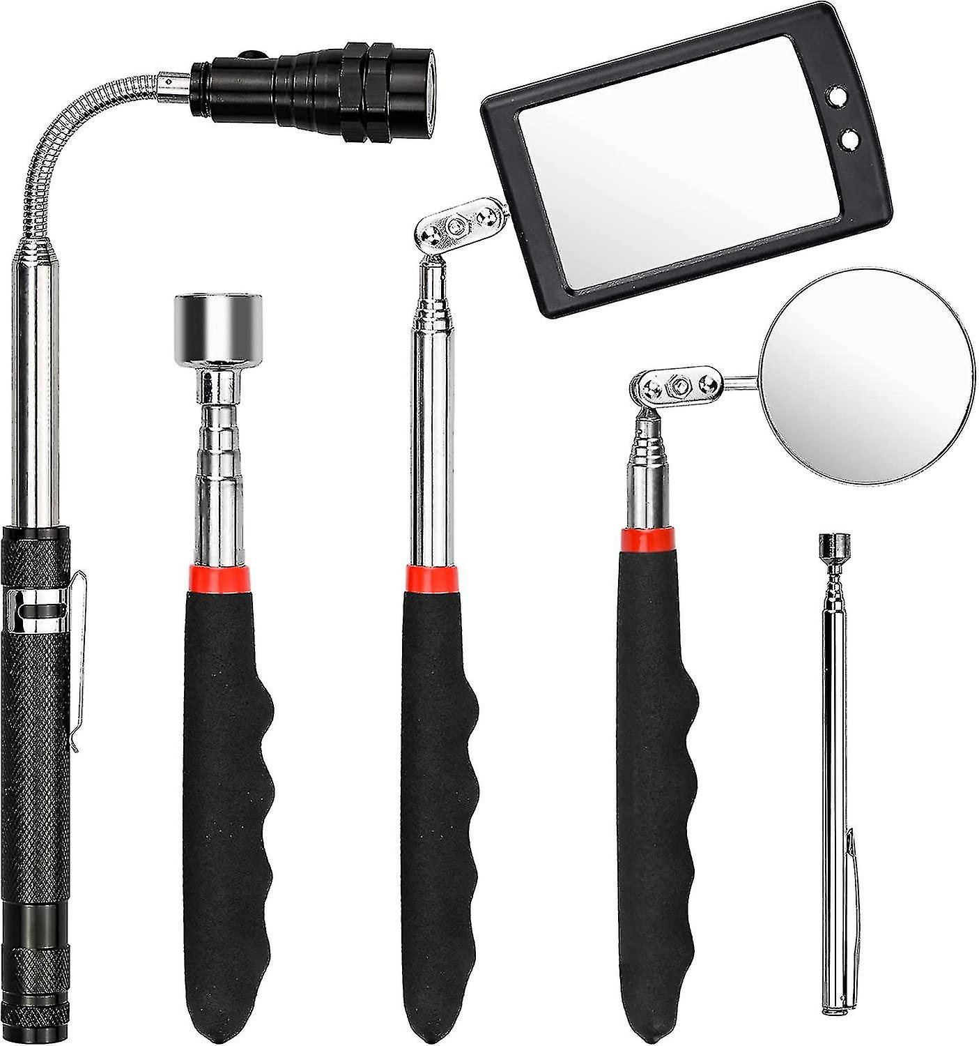 5pcs Magnetic Pick Up Tool Telescopable Magnetic Pick Up Tool Including 1.5/20lb Telescopic Magnet Square/round Inspection Mirror With Led And Flashli