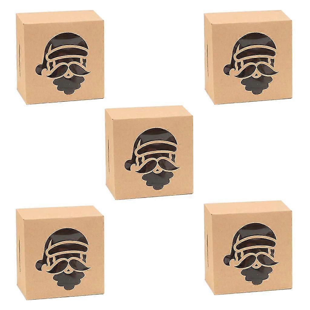 5pcs 4 Inch Kraft Paper Candy Boxes With Clear Window Christmas Snowflake Tree Elk Pattern Bakery Pastry C @BUGU