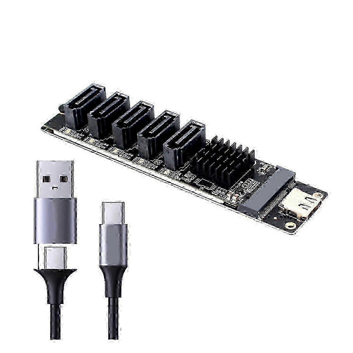 6Gbps USB10G JM575+JMS580 SATA3.0 5 Port Adapter Converter Card for Expanding SATA SSD HDD Type-C Connection