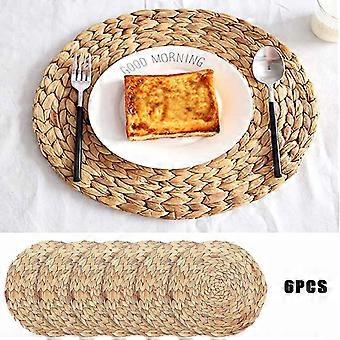 6 Pack Natural Water Hyacinth Weave Placemat Round Rattan Tablemats
