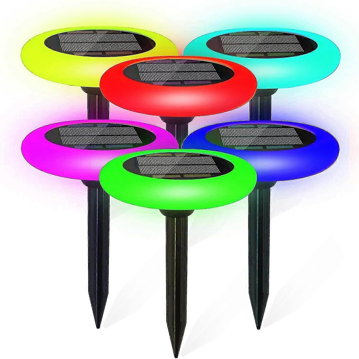 6 Pack Solar Pathway Lights With 7 Color Changing Outdoor Garden Weatherproof Auto Off Decorative Landscape Colorful Light For Lawn, Patio, Rd