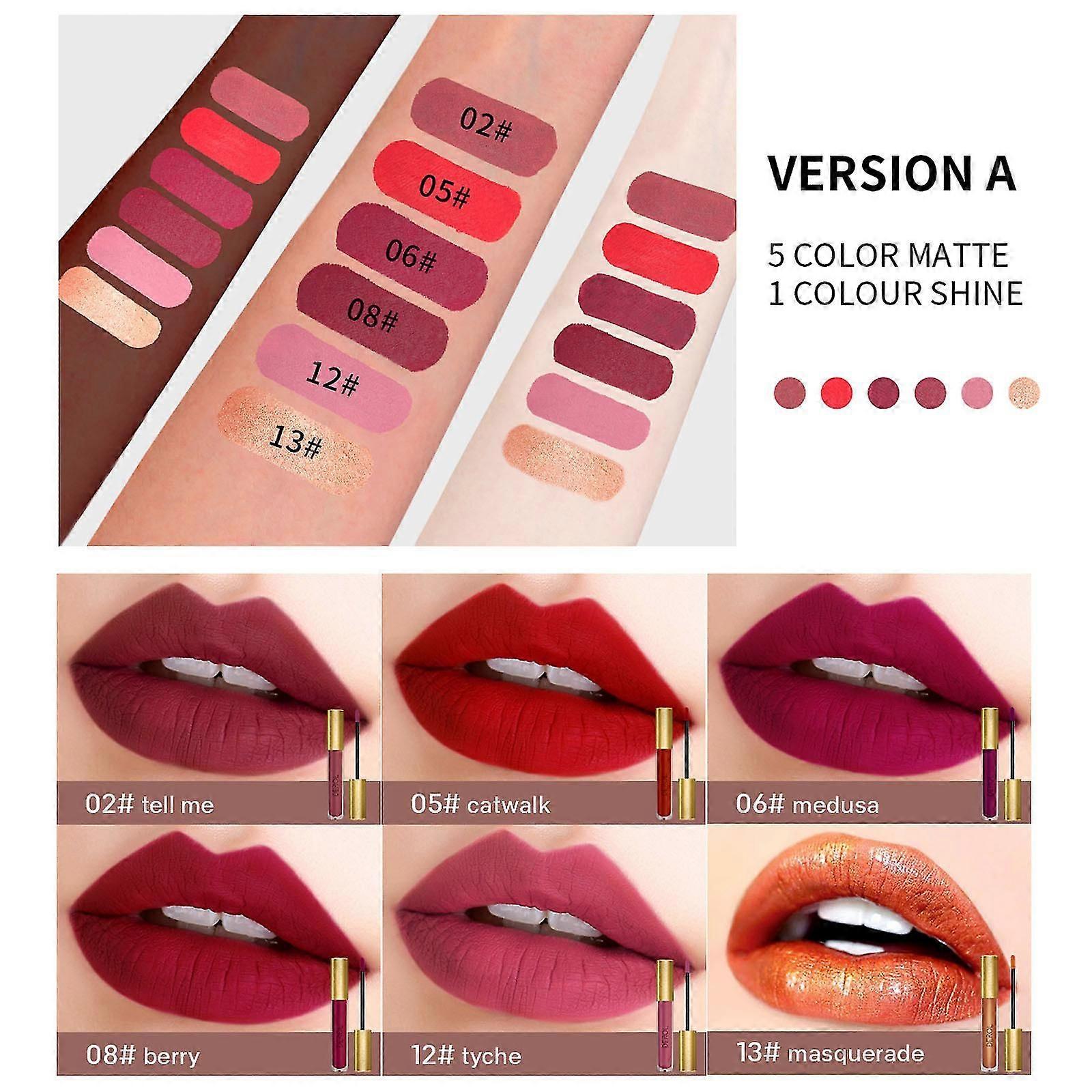 6 Lipstick Set Mirror Lip Glaze Matte Non-stick Cup Lipstick Lip Gloss 33ml