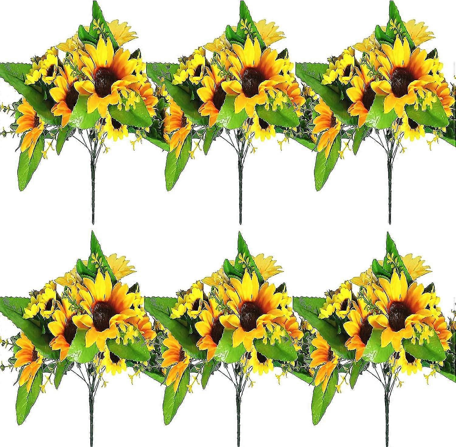 6 Pack Artificial Sunflower Bouquet - Fake Sunflowers With Stem For Office Home Decoration