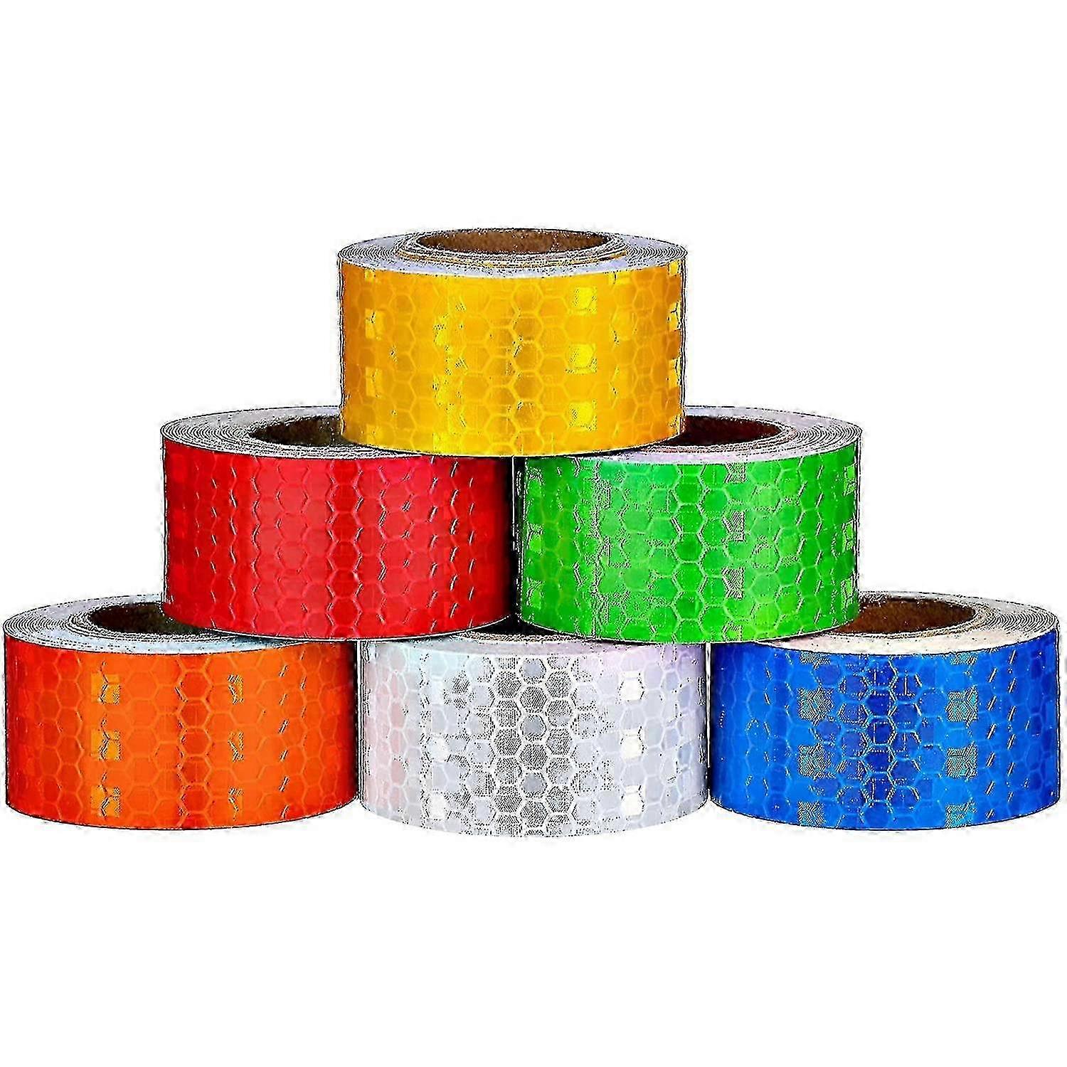 6 Pack of Reflective Warning Tapes in 6 Bright Colors for Night Safety featuring Silver Blue Red Yellow Orange and Green