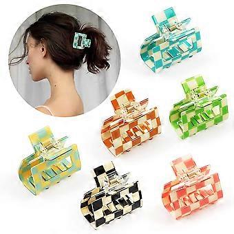 6 Pack Checkered Hair Claw Clips,Multicolored Square Medium Hair Clips, Non-Slip Claw Clips Hair Styling Accessories with Strong Hold for Women Girls