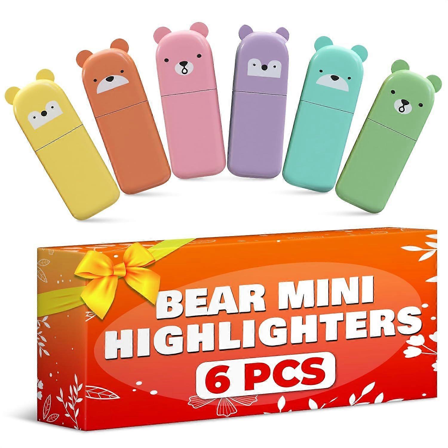 6-Pack Mini Bear Fluorescent Highlighters - Assorted Colors, Cute Bear Design Marker Set, Multi-Color Highlighters for Highlighting, Fun & Compact Mar