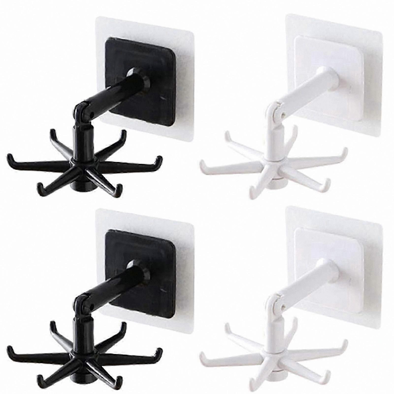 What You Will Get: The package includes 4 pieces of 360-degree rotatable hooks, consisting of 2 white hooks and 2 black hooks. Each hook features 6 prongs for versatile use, and PVC stickers are also included. Durable Material: Made from PP material, these hooks are rust-resistant and offer reliable load-bearing capacity for heavy items. Space Saving: The no-punch, wall-mounted design is simple and space-efficient. With 360-degree rotation and 180-degree vertical tilt, the hooks are easy to adjust and store. Ideal for mounting on walls or under cabinets in the kitchen, bedroom, or bathroom to help organize and save space. Easy to Use: No additional tools required. The adhesive stickers securely attach to walls without causing damage. Waterproof with strong adhesion, good load-bearing capacity, and excellent stability. Wide Application: The 180-degree vertical flip design allows use as a ceiling or wall hook. The 360-degree rotating feature makes it suitable for various small items such as kitchen tools, bathroom essentials, office supplies, and living room accessories.
