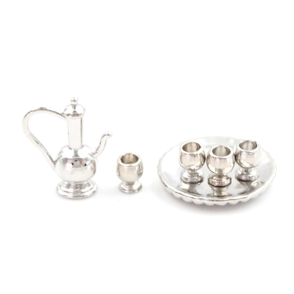 6pcs/set 1:12 Dollhouse Kitchen Furniture Toy Miniatures Metal Teapot Set Toy Decoration