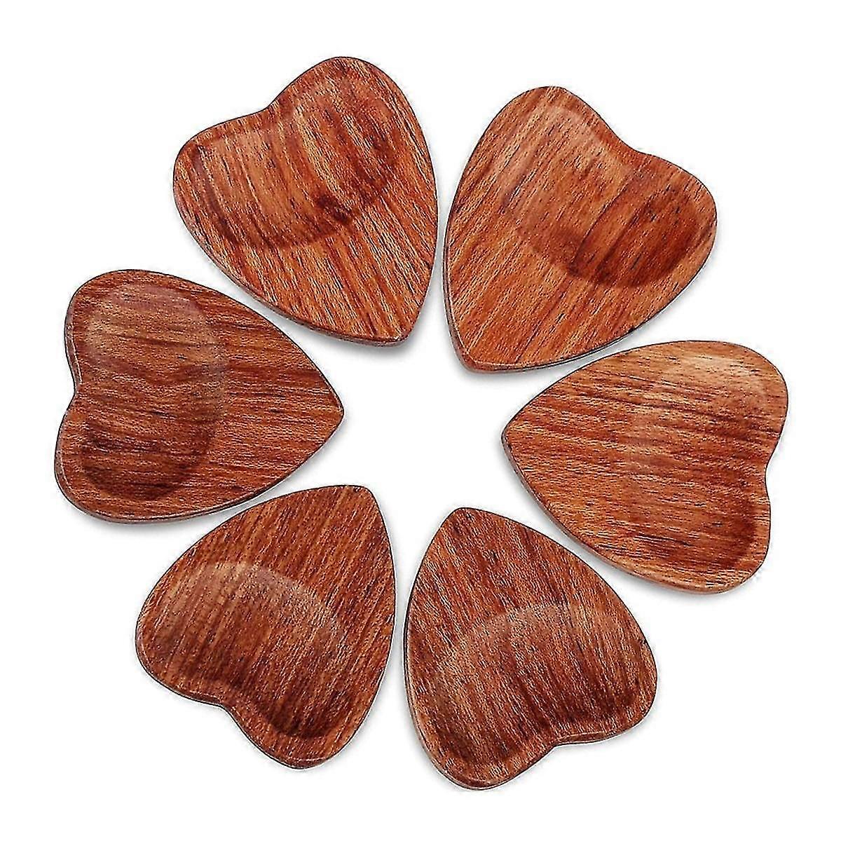 6pcs Wood Acoustic Guitar Picks Heart Shape Picks Parts Musical Instrument Guitar Accessories