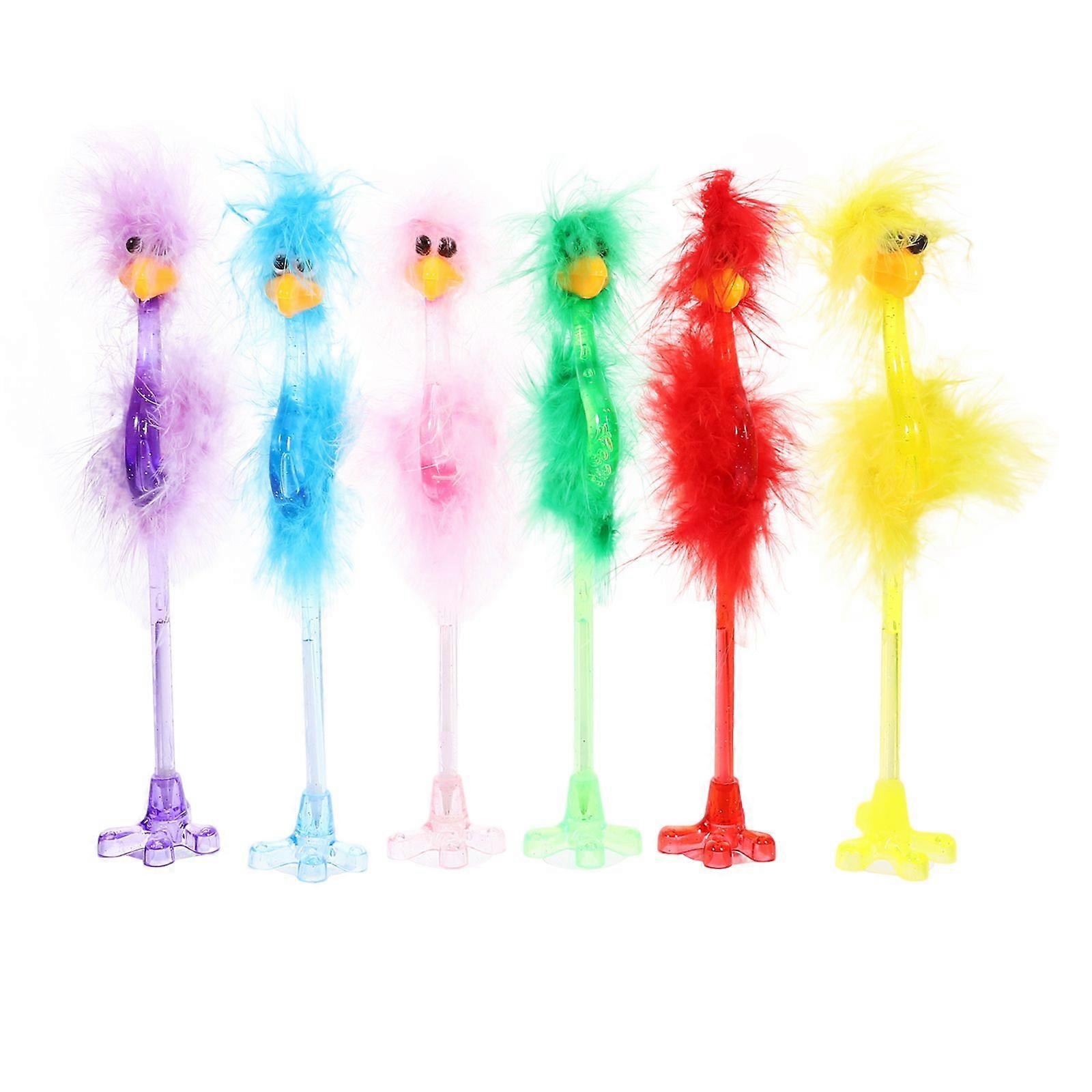 6pcs Ostrich Shape Ball-point Pen Cartoon Feather Ballpoint Pens Stationery for Home School Office Random Color