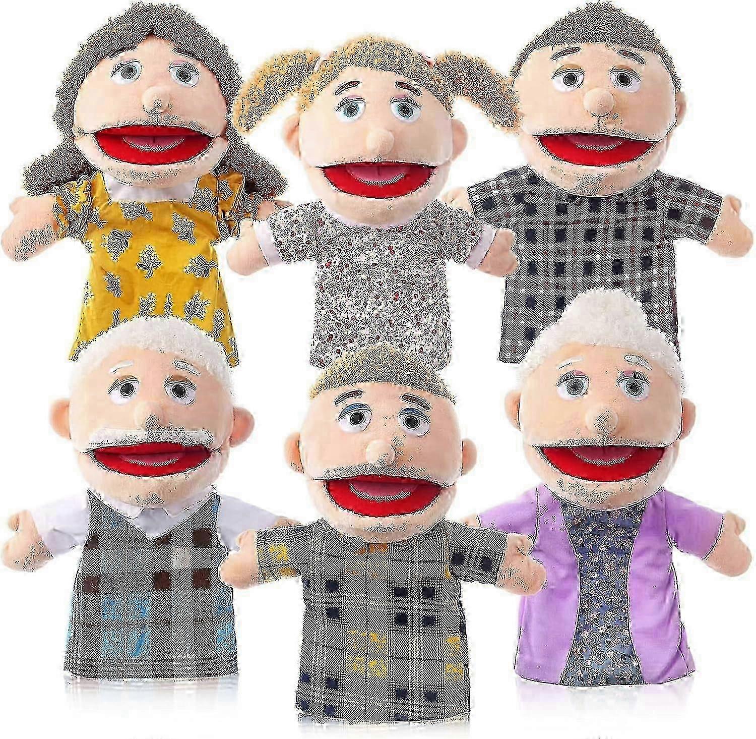 6 Pcs Family Members Hand Puppets Toy12 Inch Mouth Opening Hand Puppet Role-Play Toy Puppets for KidsStorytelling Imaginative