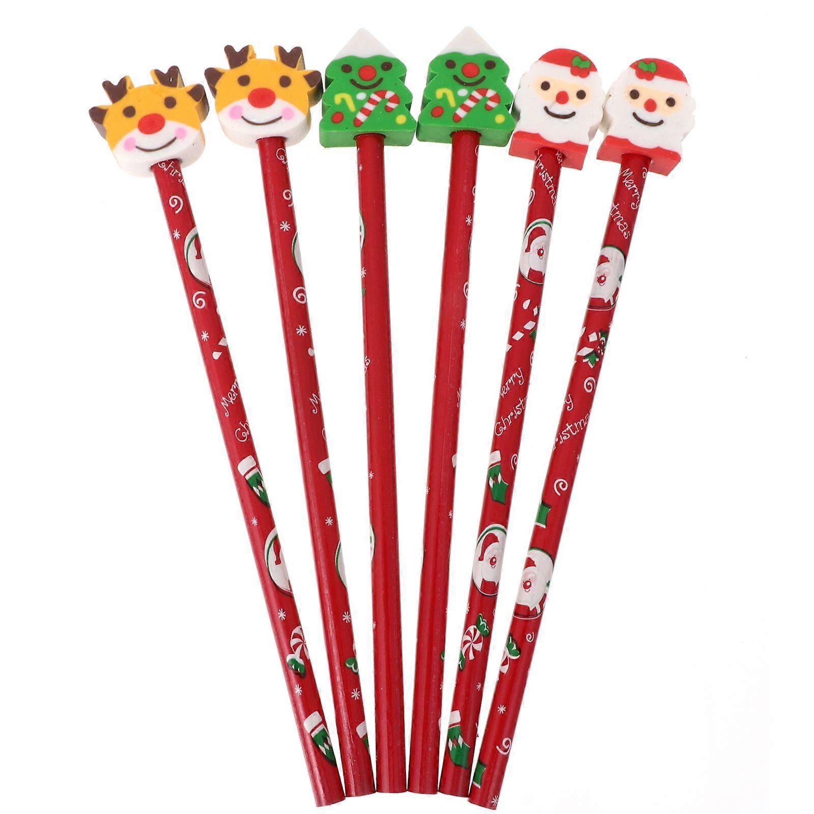 6pcs Christmas Series Pencils with Erasers Cartoon Pencils Students Stationery