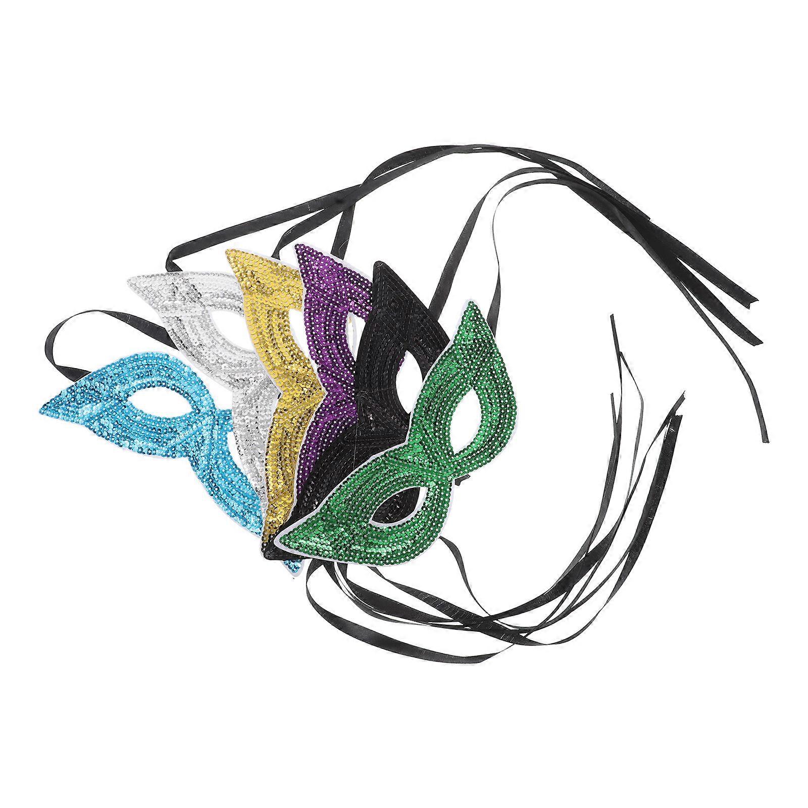 Stand out at your next masquerade or carnival event with this eye-catching headband half-face mask. The vibrant sequins in gold, purple, and green create a stunning visual effect, while the comfortable headband ensures a secure fit. Ideal for Mardi Gras, themed parties, and other festive celebrations, this mask adds a touch of sophistication to any outfit. Features -Color:Assorted Color -Material:Cloth,sequin -Size:21.80X8.20X0.20cm/8.57X3.22X0.08in -Unique and striking: the gold, purple, and green sequins offer a unique and striking look, ensuring you stand out at any event -Versatile fashion: these masks are a stylish accessory that can complement a variety of outfits for different occasions -For parties: it's for group events, ensuring everyone can join in the fun -Festive atmosphere: essential for carnival celebrations, these masks bring a joyful and lively touch to your event -Easy application: simple to wear and comfortable, these masks are suitable for various events and parties Package list: 6 eye masks, carnival eye masks