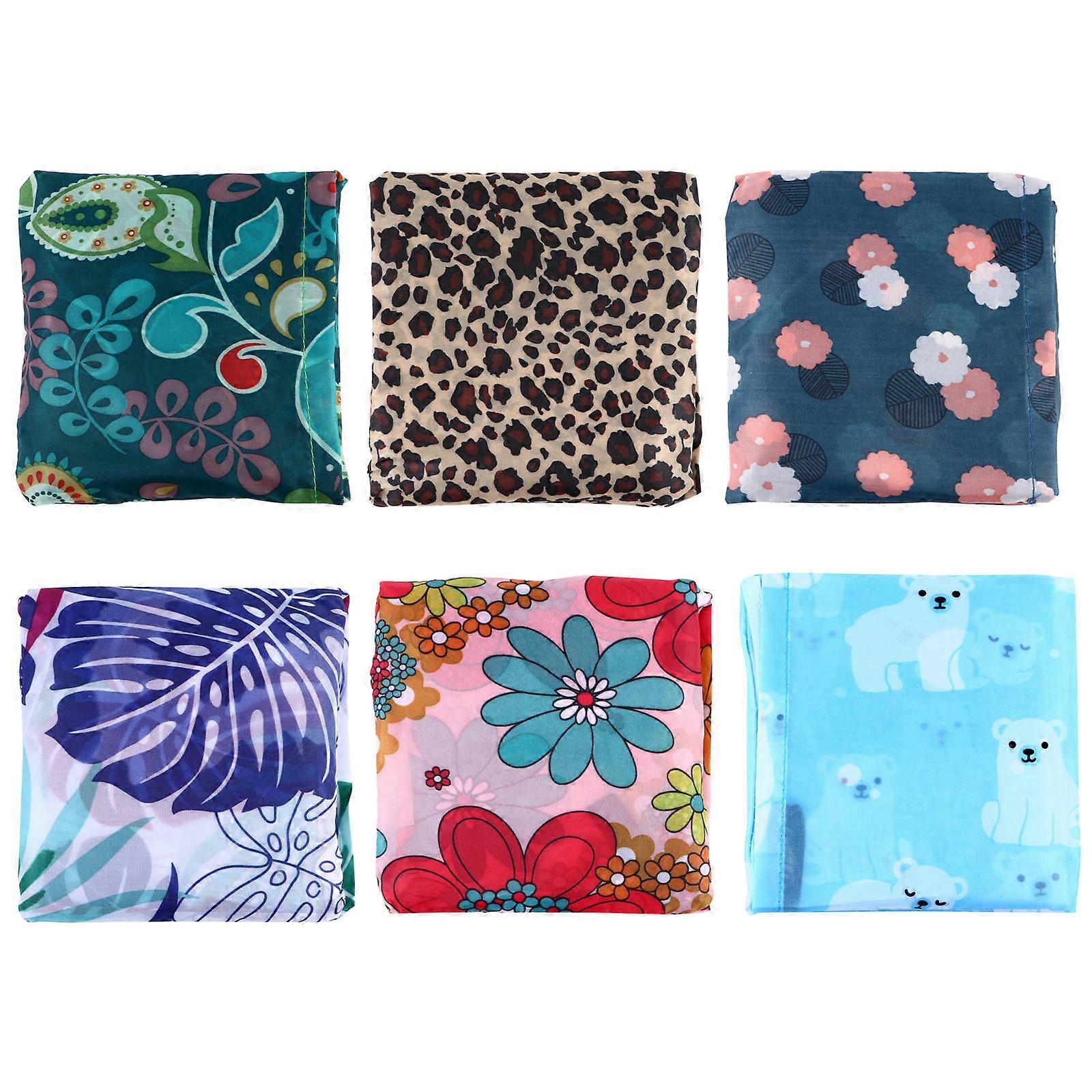 6pcs Reusable Folding Oxford Storage Bags, Lightweight Portable Shopping Pouches with Printed Designs for Daily and Supermarket Use