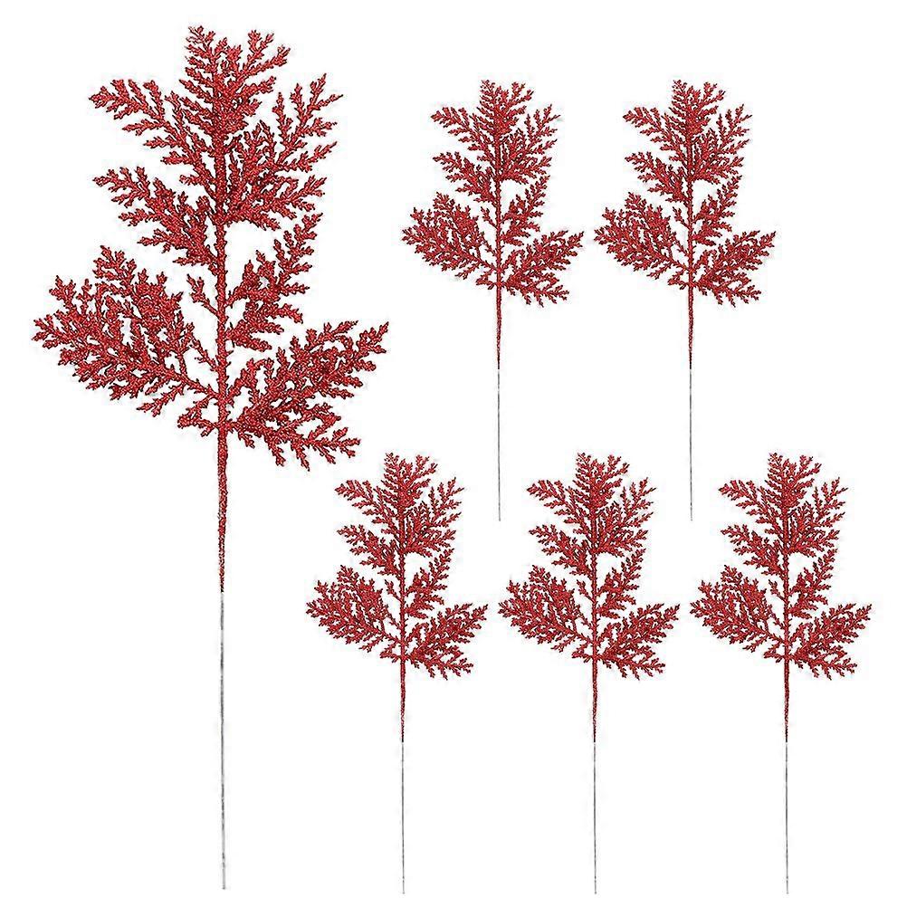 6pcs Artificial Christmas Leaves Picks DIY Xmas Tree Wreath Materials Wedding Decorations