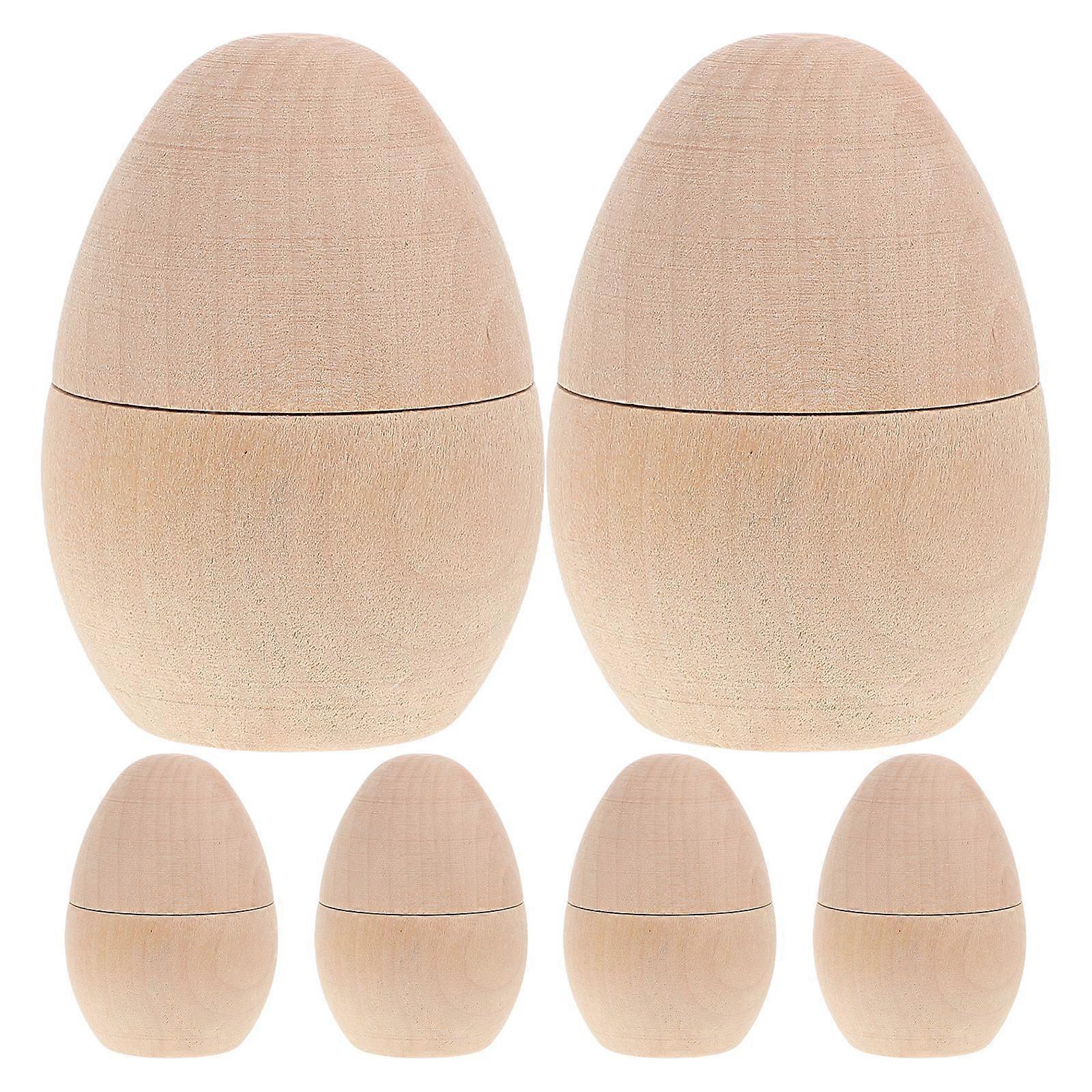 6pcs Hand Painted Wooden Eggs Unfinished Wood Craft Eggs Fake Wood Eggs for DIY Painting Easter Art Craft Table Decorations