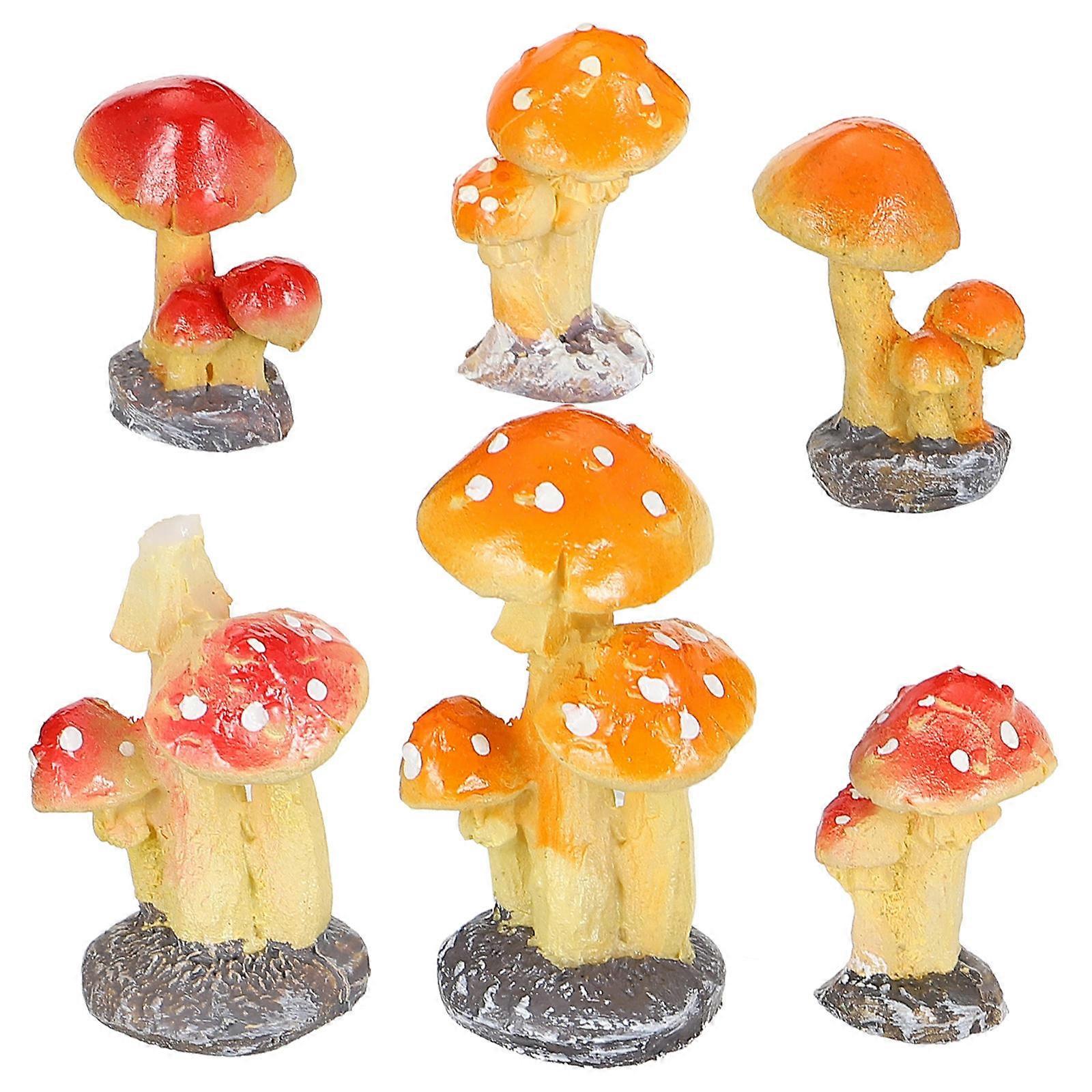 6pcs Resin Mushroom Figurines for Micro Landscape, Fairy Garden Decor – Miniature Props for Indoor & Outdoor Use – Assorted Styles