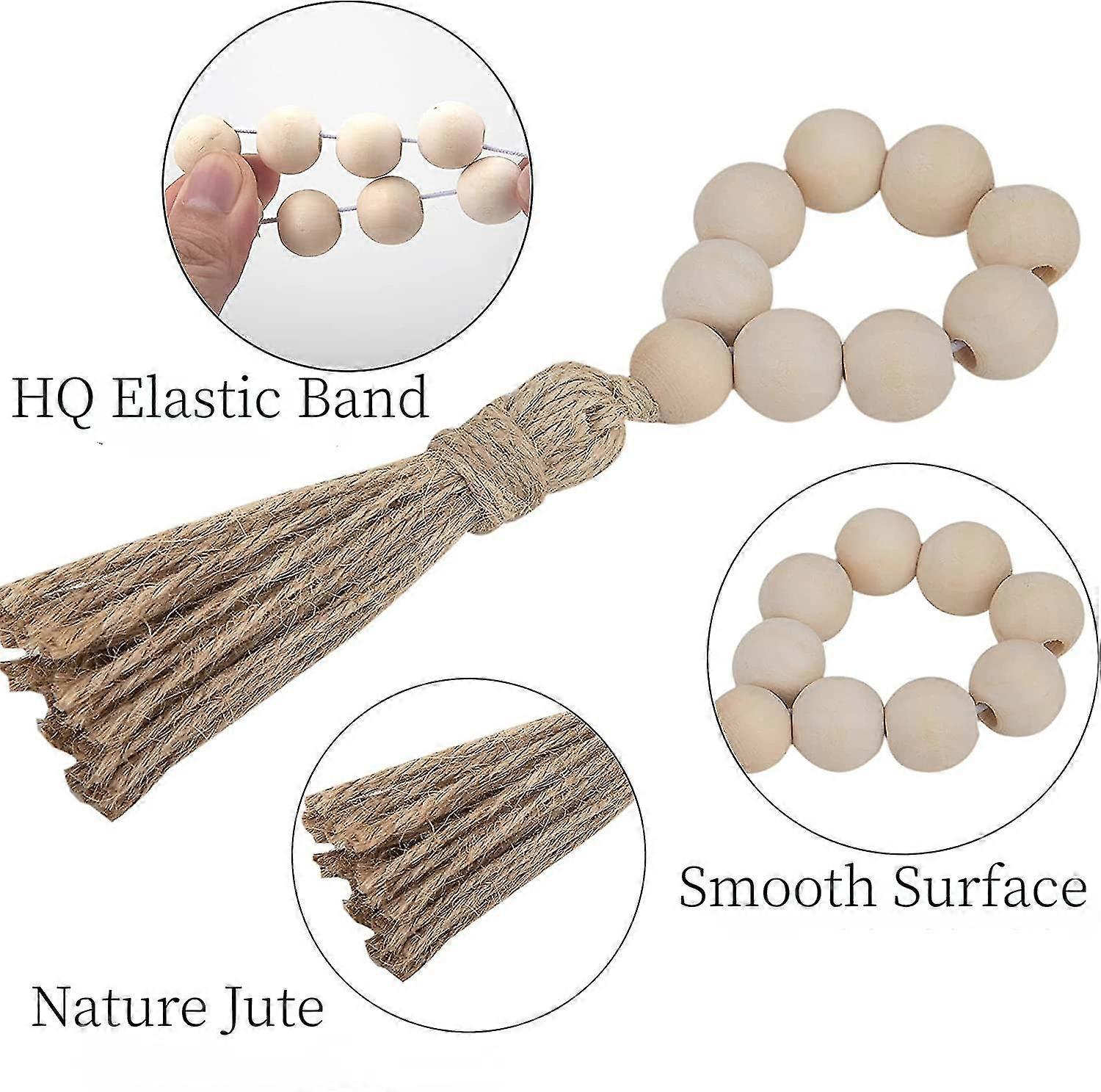6pcs Wedding Party Thanksgiving Wooden Bead With Tassels Napkin Ring Table Hotel