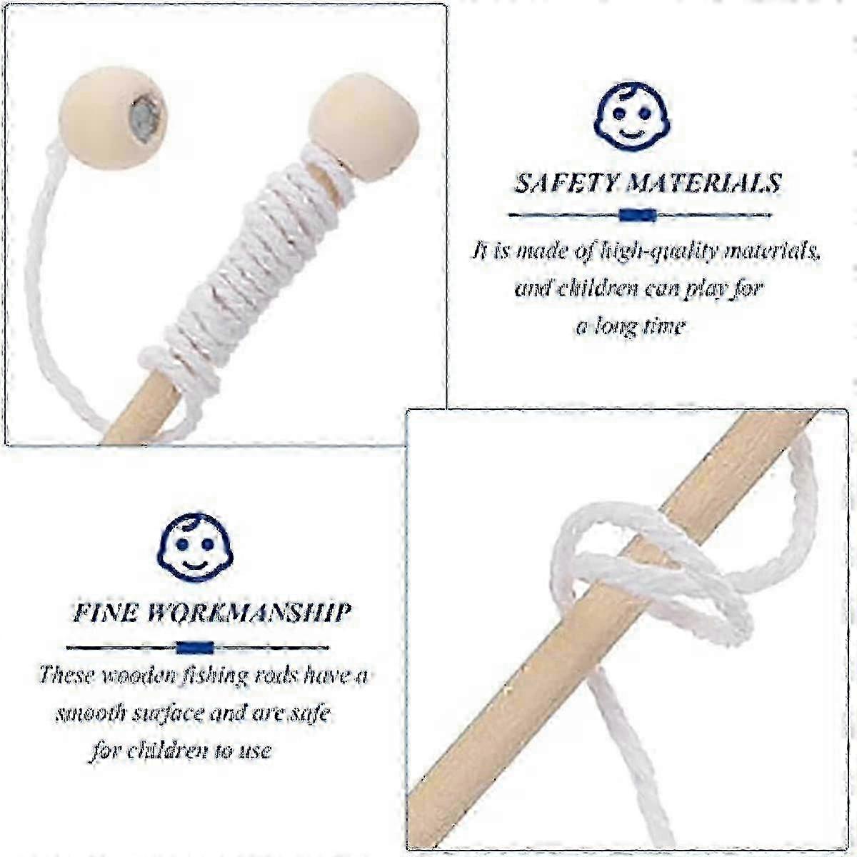 6pcs Wooden Magnetic Fishing Poles Unfinished Fishing Rod Wood Magnetic Fishing Game Toy For Kindergarten Preschool Girl Boy Pool Beige
