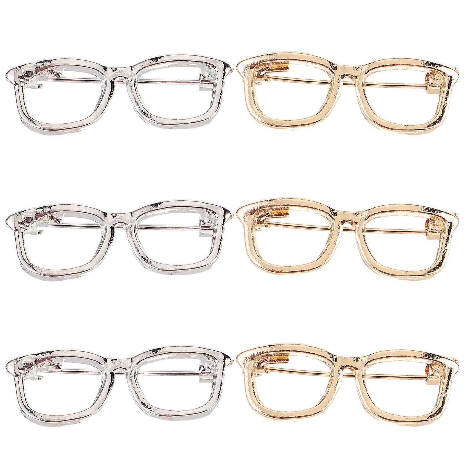 6pcs Creative Alloy Eyewear Brooches for Women – Lightweight Lapel Pins in Gold & Silver – Perfect for Dresses, Coats, Parties & Gift Giving