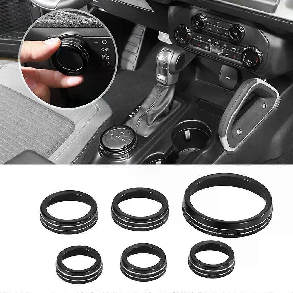 6Pcs Air Condition Radio 4WD Headlight Knob Ring Control Switch Decorative Ring Trim Cover for Ford Bronco 2022+ Blue Red Black