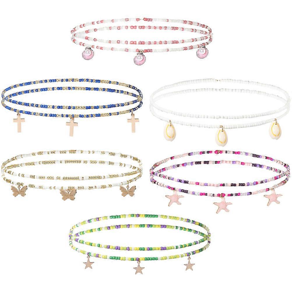 6pcs Rice Bead Waist Chains for Women – Elegant Belly Chains for Beach, Body Jewelry & Casual Outfits