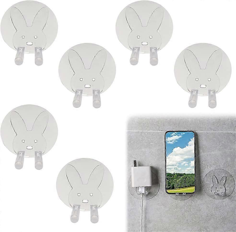 6 Pcs Wall-Mounted Power Plug Organizer Hook Rabbit Self Adhesive Double Hooks Multi-Purpose Shaving Razor Towel Hook for Kitchen Bathroom Bedroom