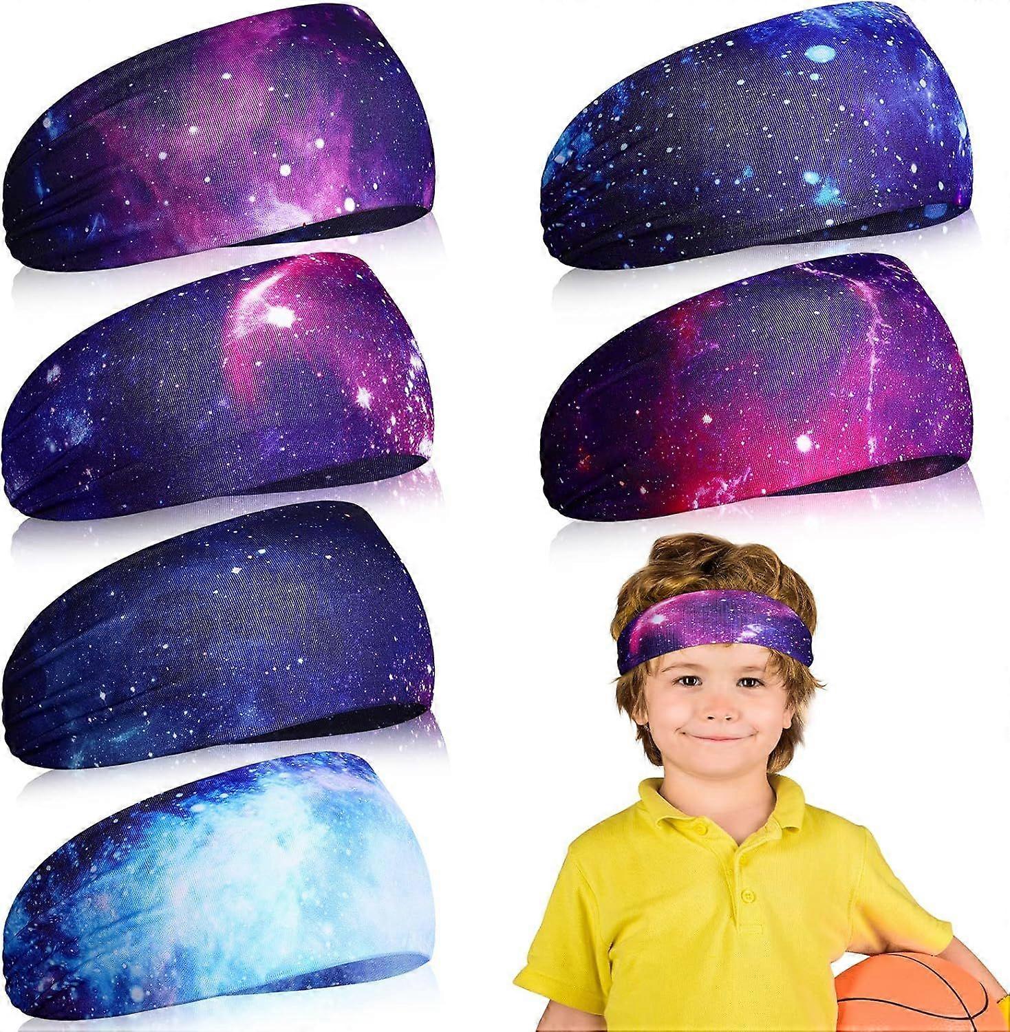 6 Pcs Sweatbands for Kids Soccer Headbands Boys for Sports Breathable Sweat Wicking Headband for Kids Athletic Football Baseball Youth 5-15 Years Old