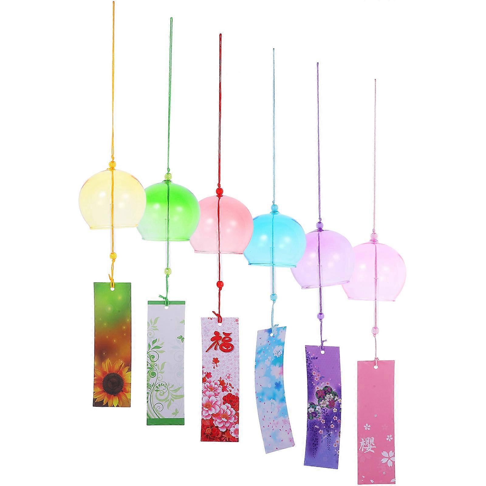 6pcs Japanese Style Glass Wind Chimes Colorful Hanging Bells for Balcony, Garden & Outdoor Decor Sweet Sound, Sturdy Design for Home & Ornament