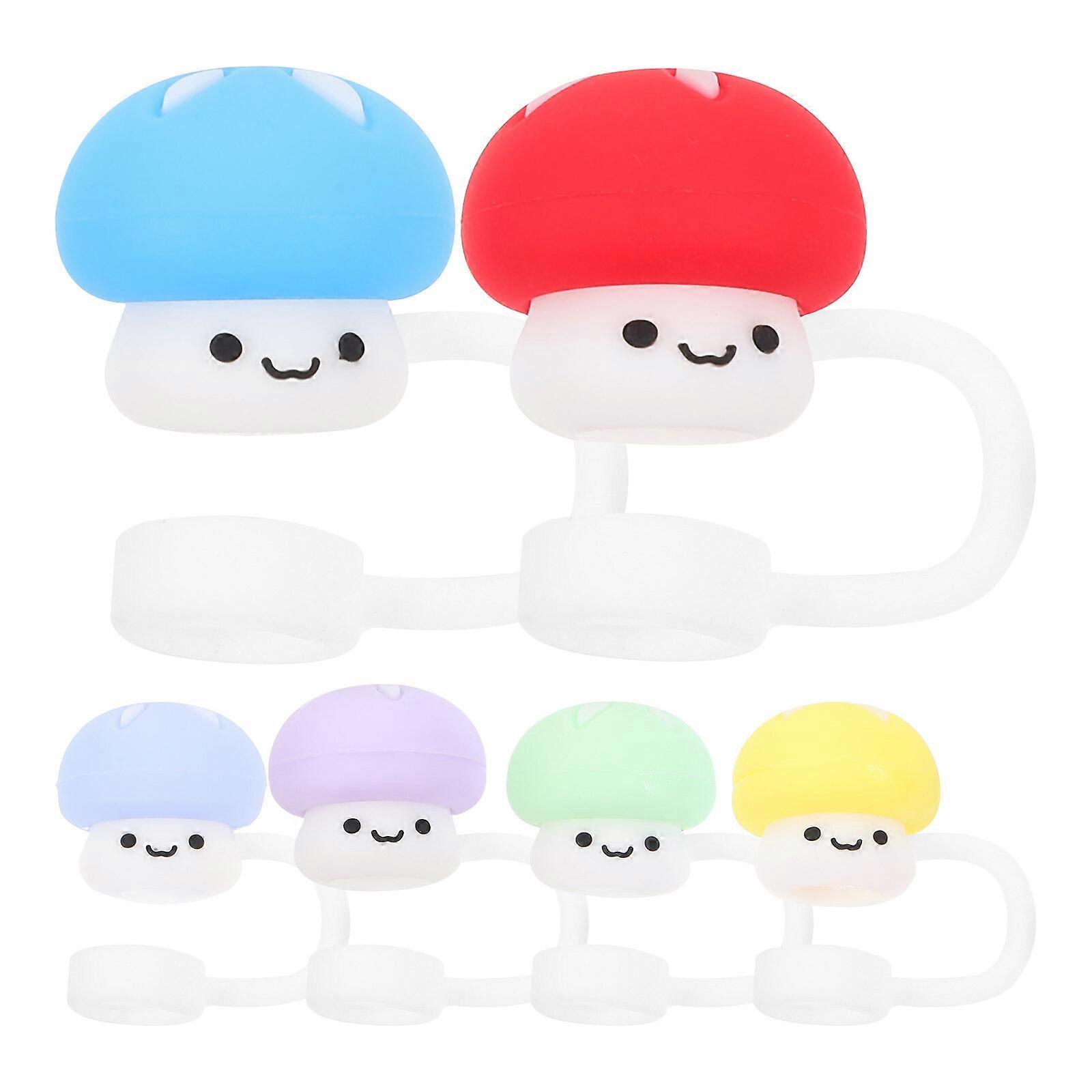 6pcs Mushroom Shaped Straw Covers Drinking Straw Tips Lids Silicone Straw Protectors Straw Toppers Mixed Color