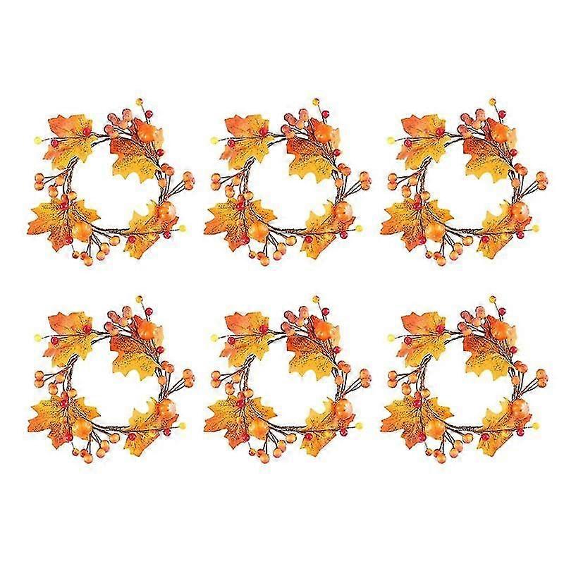 6pcs Christmas Candle Rings Wreath Artificial Candle Rings Tea Light Ring For Christmas Thanksgivin