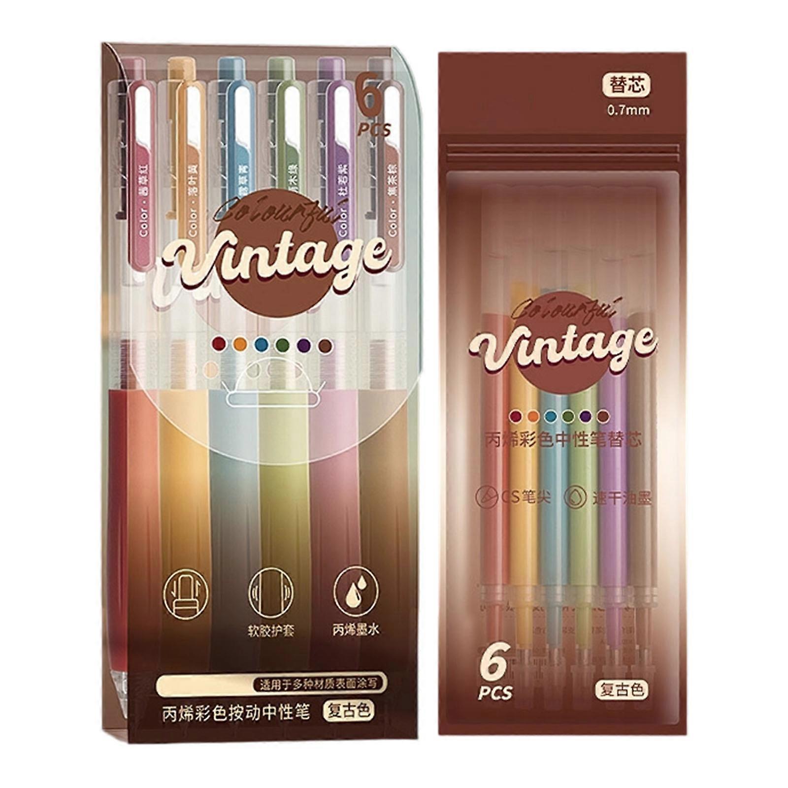 6 Pcs Retractable Gel Pen Colorful Gel Pen 0.5mm Signing Pen with Comfortable Grip For Note Taking Journaling Retro color system