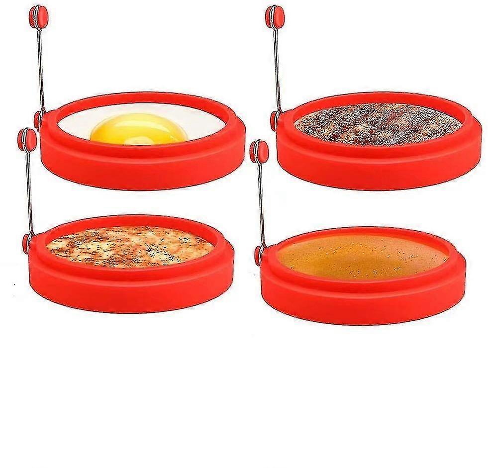 6 Pcs Fried Egg Molds For Frying Pan Egg Rings Silicone Pancake Pan Round Green Omelet Mold For Cooking Eggs (red Circle)