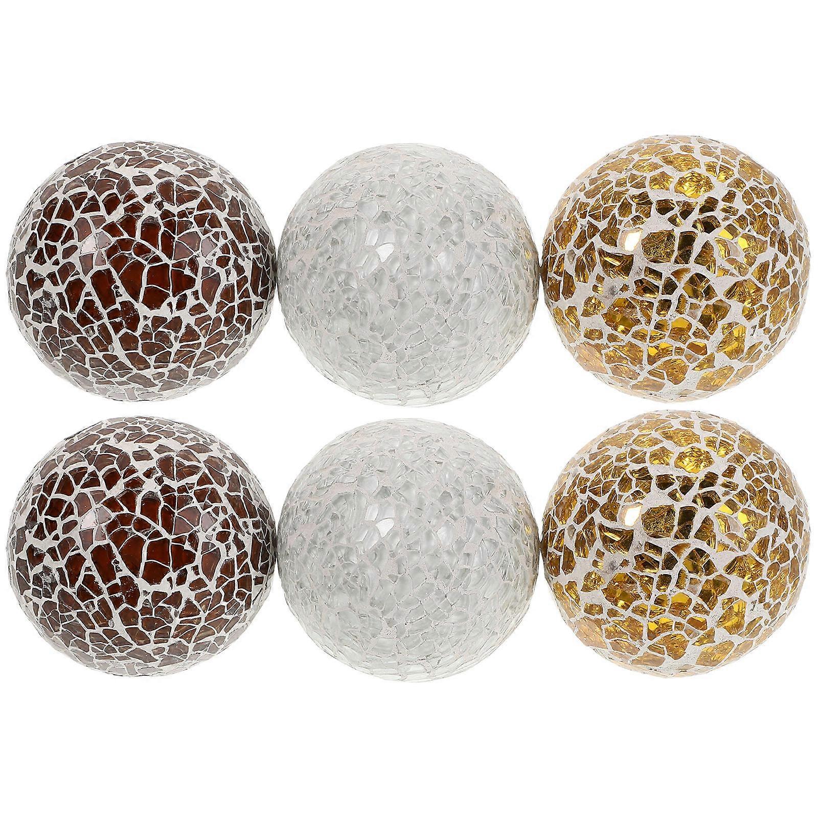 These ball ornaments are a stylish addition to any home decor. Use them to create a stunning centerpiece for your dining table or place them in a decorative bowl on your coffee table. Their reflective surfaces and intricate designs add a touch of elegance and sophistication to any space. Features -Color:Assorted Color -Material:Glass ,foam -Size:6.00X6.00X6.00cm/2.36X2.36X2.36in -Refined design: the intricate pattern of these glass balls adds a refined and decorative touch to your dining table, enhancing its overall look -Durability: made from sturdy glass, these balls are designed to resist deformation and breakage, providing beauty -Versatile decor: suitable for various environments, including homes, hotels, offices, and cafes, these balls can be displayed in decorative bowls, vases, or trays -Compact design: these decorative balls are easy to handle and store, making them a practical addition to any room without taking up too much space -ideal: these elegant balls make a thoughtful and stylish present for friends, family, or colleagues, adding a touch of sophistication to any decor Package list: 6 x glass balls