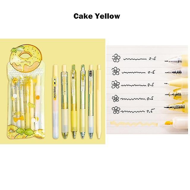 6pcs Cream Gel Pens And Highlighter Set Transparent Barrel Black Ink Writing Multi Color Marker Office School Supplies