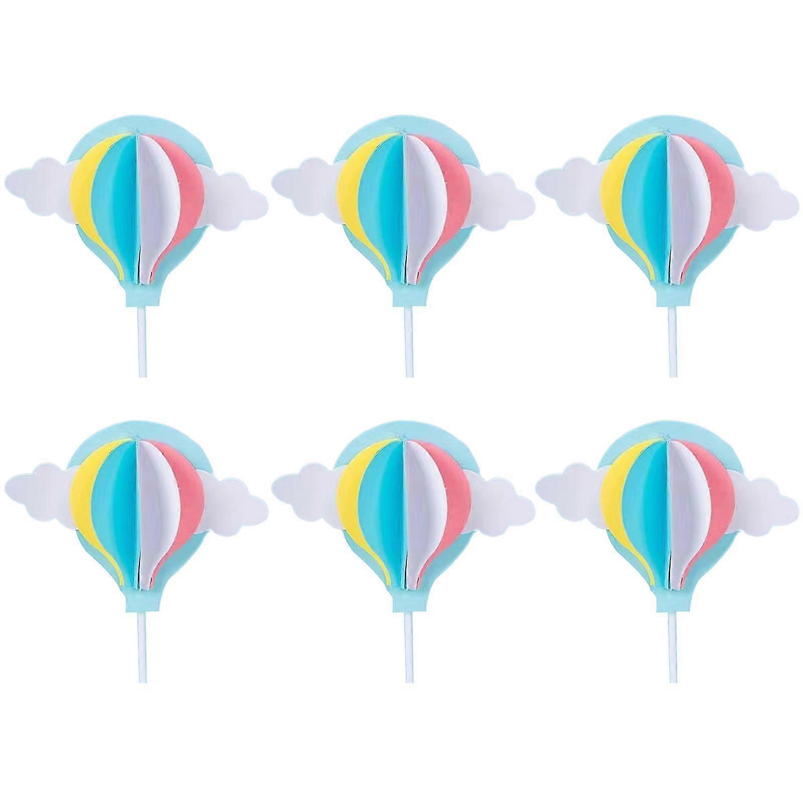 6Pcs Cake Stick Cartoon Hot Air Balloon Design Three-dimensional Paper Hot Air Balloons Clouds Cake Toppers Cake Decoration