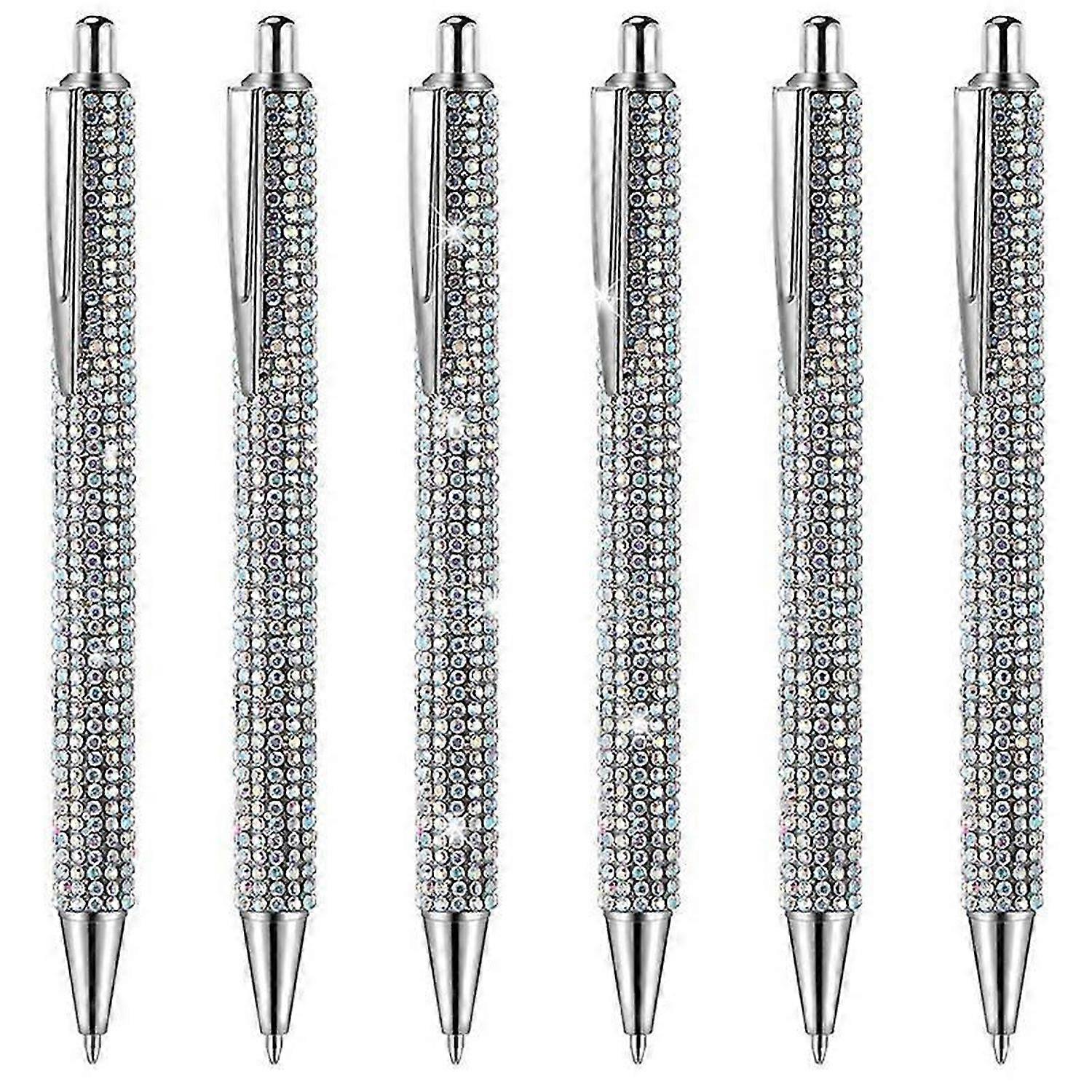 6 Pcs Cute Pen Bling Diamond Pens Christmas Rhinestones Gift Silver Metal Ballpoint Pens Fancy Spark