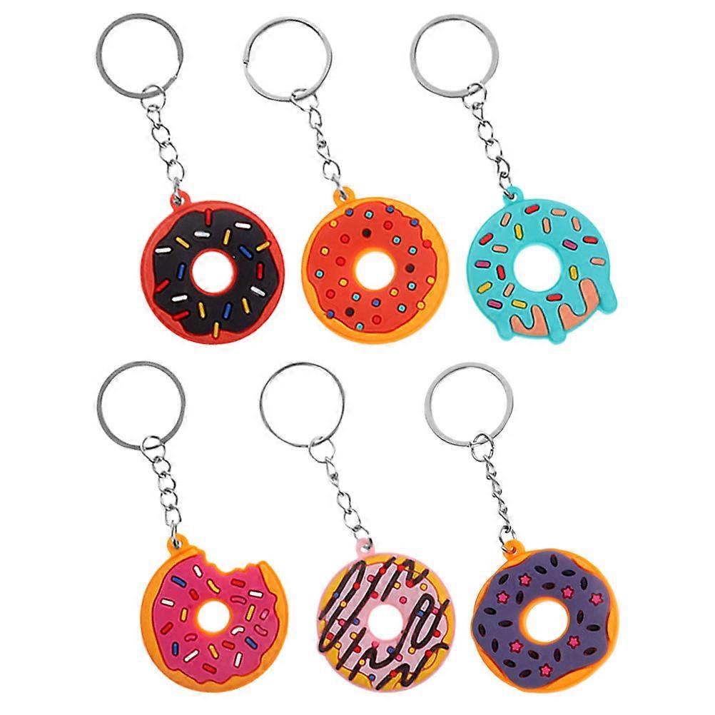 6PCS Cute Donut Keychain PVC Soft Hanging Charms Adorable Decorative Key Rings for Party Favors Friends Backpack Pendants