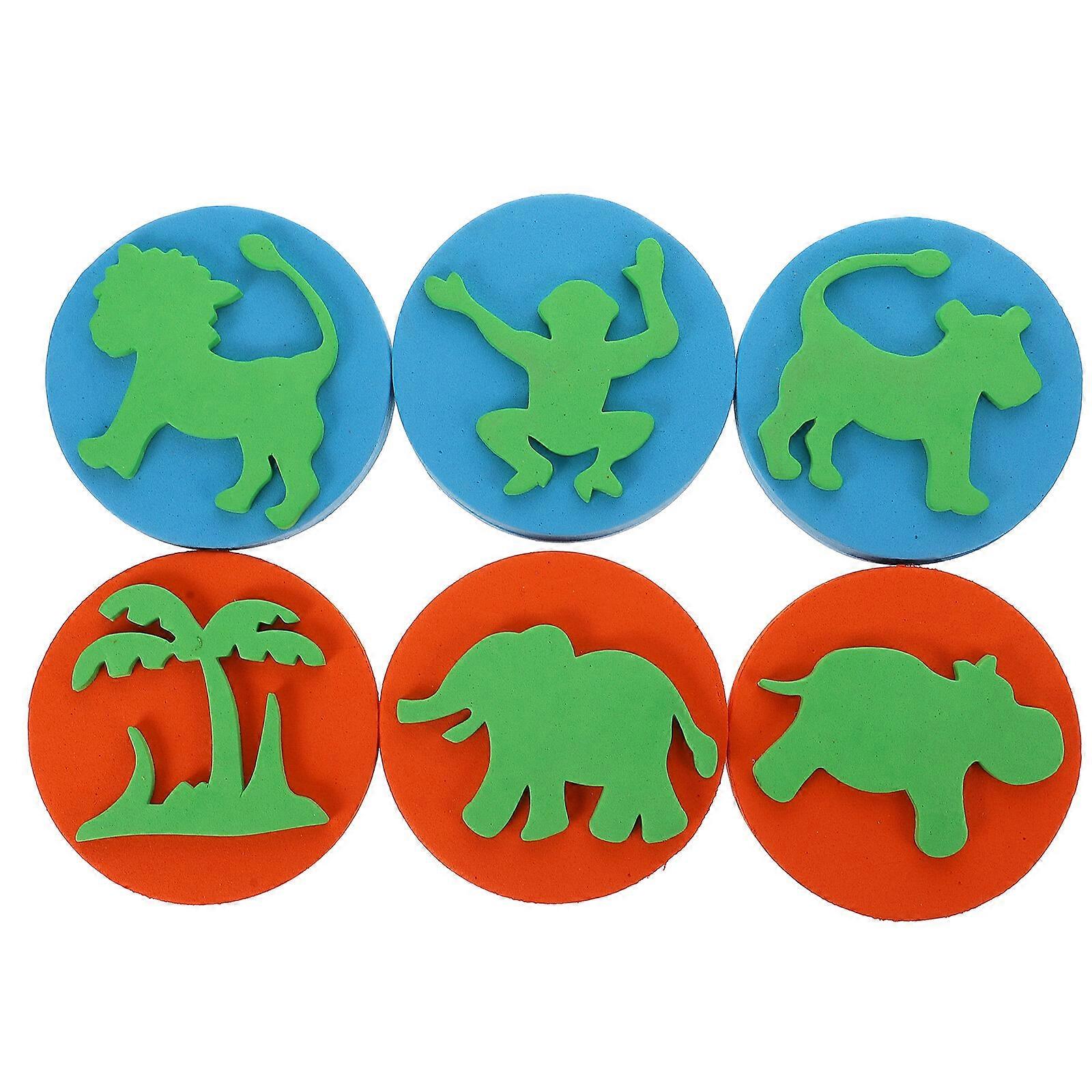 6pcs Assorted Pattern Kids Animal Stamps Graffiti Hand Stamp EVA Painting Seal