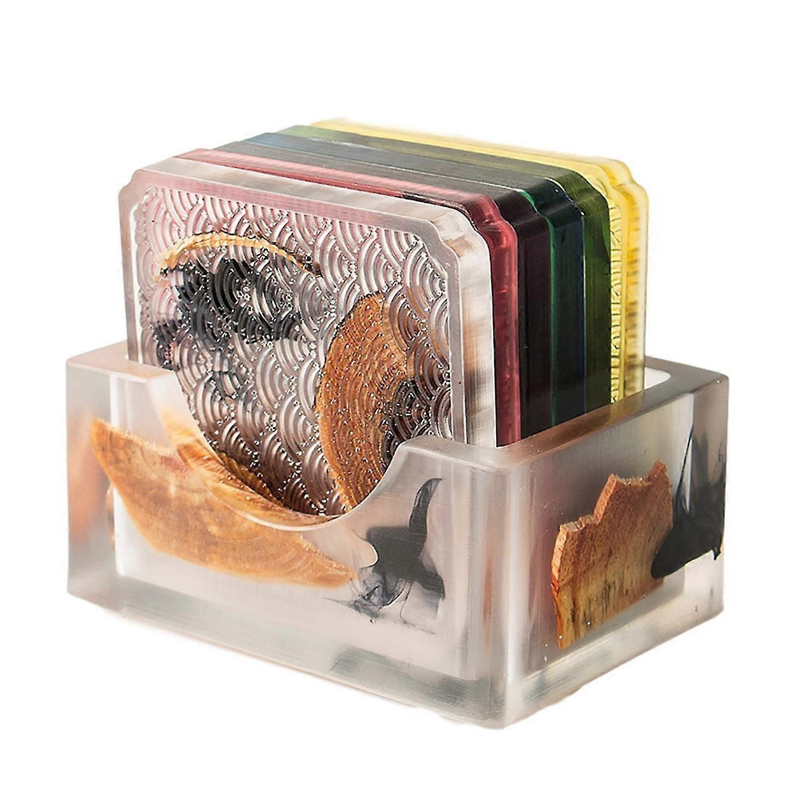 6 Pcs/set Resin Pine Coasters Heat Resistant Placemats Natural Drink Mat Tea Coffee Cup Pad With Storage Holder Box Waterproof Non-slip For Creative H