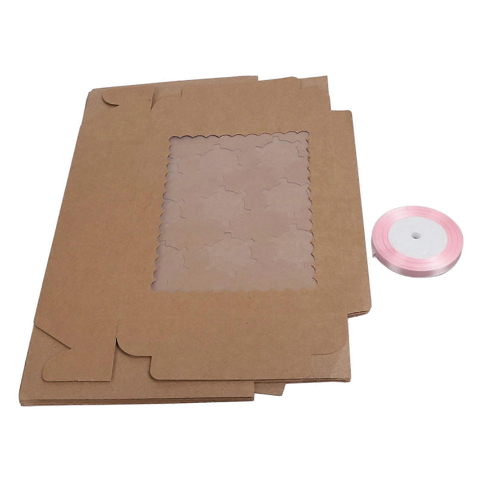 6PCS Set Cupcake Container 12 Holes Cardbord Bakery Pastry Carrier Box with Transparent Window Kraft Paper
