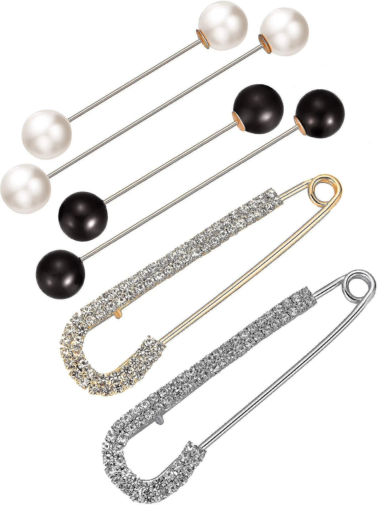 6 Pieces Sweater Shawl Clips Set, Include Double Faux Pearl Brooch Pins And Crystal Shawl Clips Compatible With