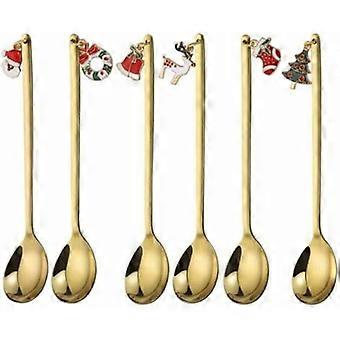 6 قطع / مجموعة ملاعق عيد الميلاد الفولاذ المقاوم للصدأ طقم قهوة إبداعي مطلي بالذهب ، ملعقة حلوى ملعقة خلاط مطبخ منزلي (ذهبي)