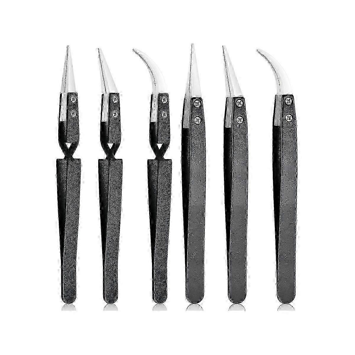 6Pcs Precision Reverse Ceramic Tweezers Set, Anti-Magnetic Soldering Tweezers - Black